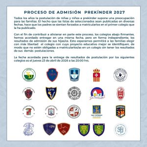 | Sábado 5 de abril | Jornada de Observación Diagnóstica Prekínder 2026. Se citará a los padres mediante correo electrónico indicando la hora de la evaluación de su hijo/a. |