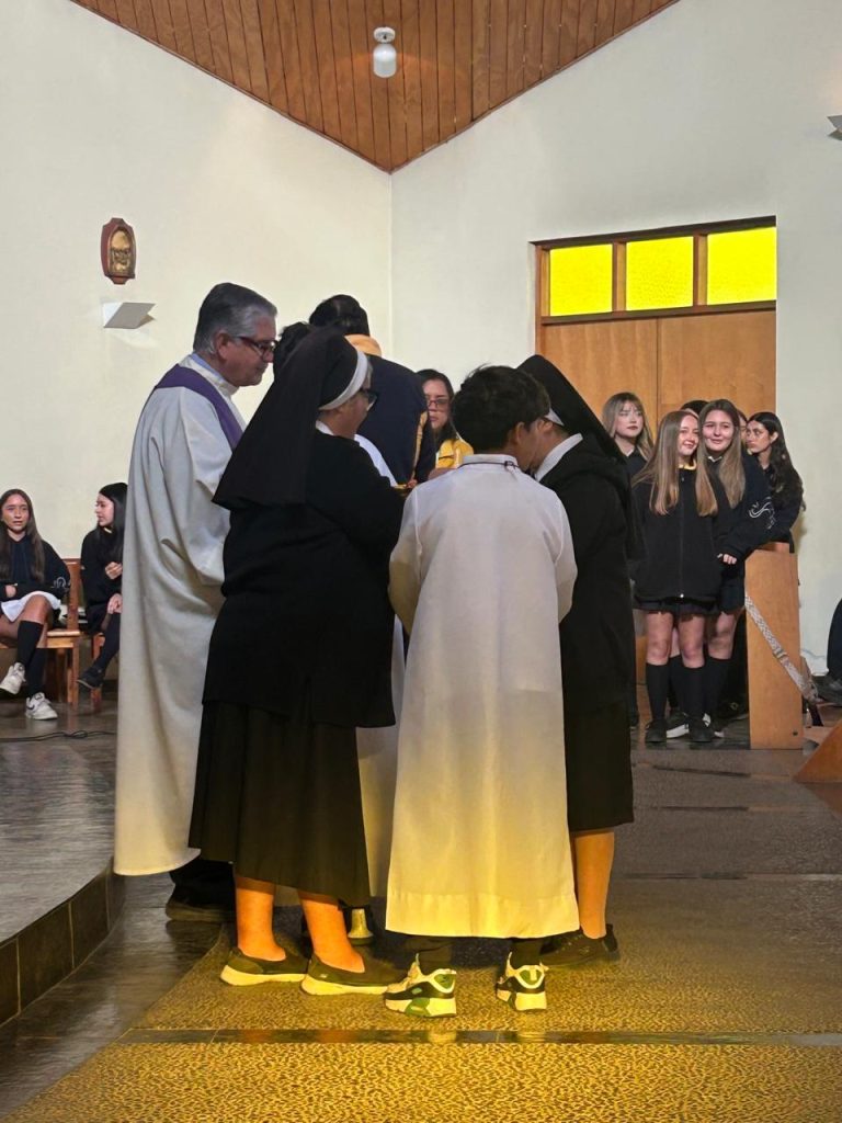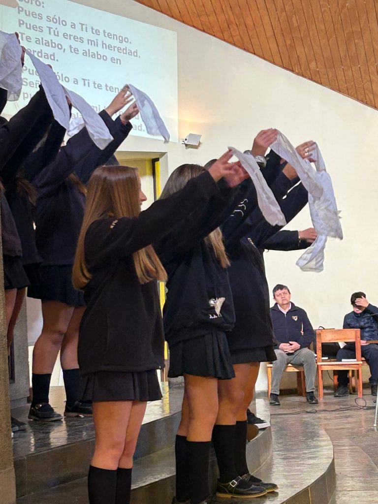 Uno de los momentos más destacados fue también el saludo de las estudiantes de quinto básico del colegio, quienes con alegría expresaron: “Hoy estamos celebrando el cumpleaños de San Alfonso María Fusco. Les venimos a contar sobre el fundador de nuestro colegio. Él era un hombre generoso, le encantaba educar y ayudar. ¡Feliz cumpleaños!”.