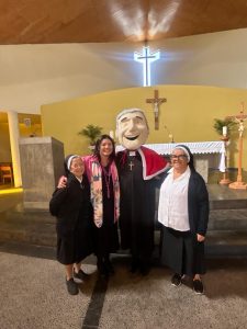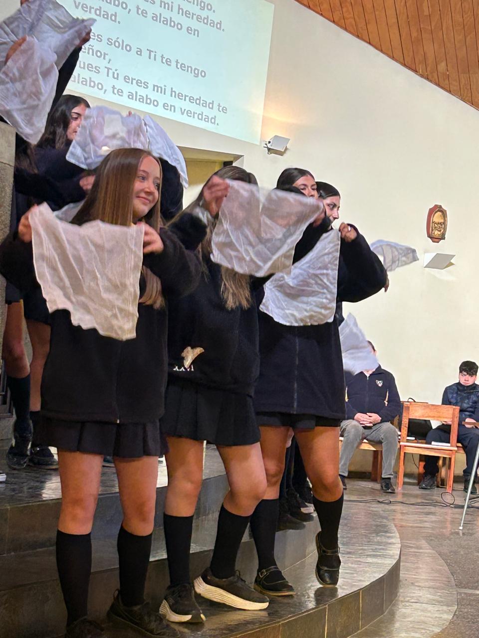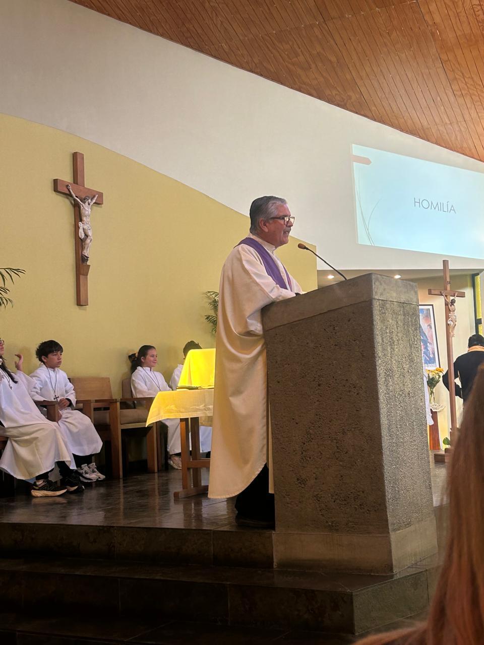 Uno de los momentos más destacados fue también el saludo de las estudiantes de quinto básico del colegio, quienes con alegría expresaron: “Hoy estamos celebrando el cumpleaños de San Alfonso María Fusco. Les venimos a contar sobre el fundador de nuestro colegio. Él era un hombre generoso, le encantaba educar y ayudar. ¡Feliz cumpleaños!”.