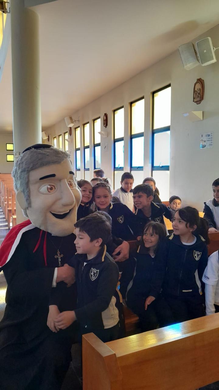 Asimismo, uno de los momentos más cercanos y significativos de la jornada fue la presencia de un corpóreo de San Alfonso, que recorrió el colegio animando a los estudiantes y compartiendo con ellos, generando un ambiente de alegría y cercanía. Durante la actividad, niños y jóvenes pudieron fotografiarse junto a él, fortaleciendo el vínculo con la figura del fundador de una manera lúdica y significativa.